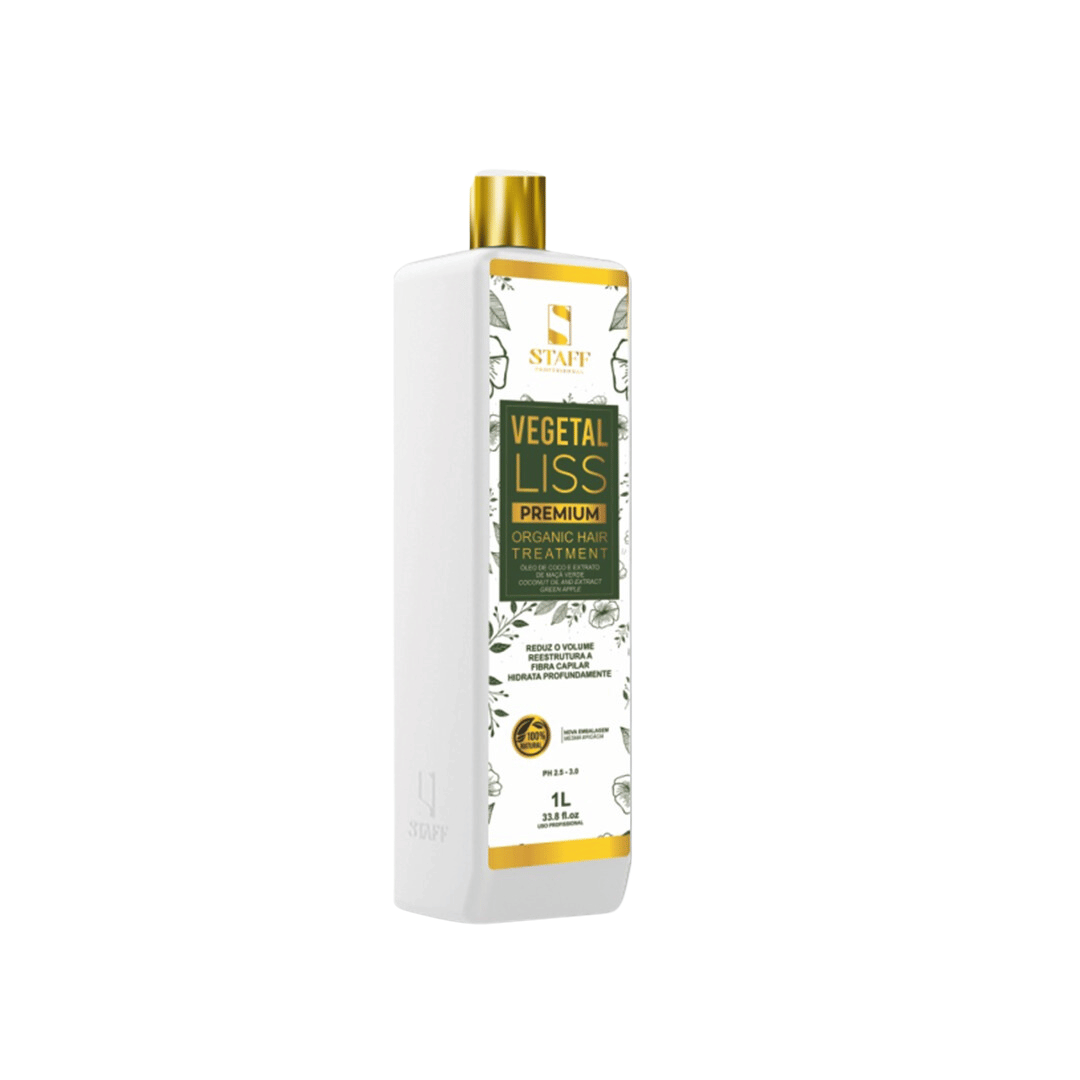Vegetal Liss é um alisamento orgânico indicado para todos os tipos de cabelo. Com óleo de coco, extrato de maçã verde, ômega 3, 6 e 9, trata e reconstrói os fios, deixando os cabelos naturalmente lisos, macios e com brilho intenso. Passo único, promove o liso até em fibras mais difíceis