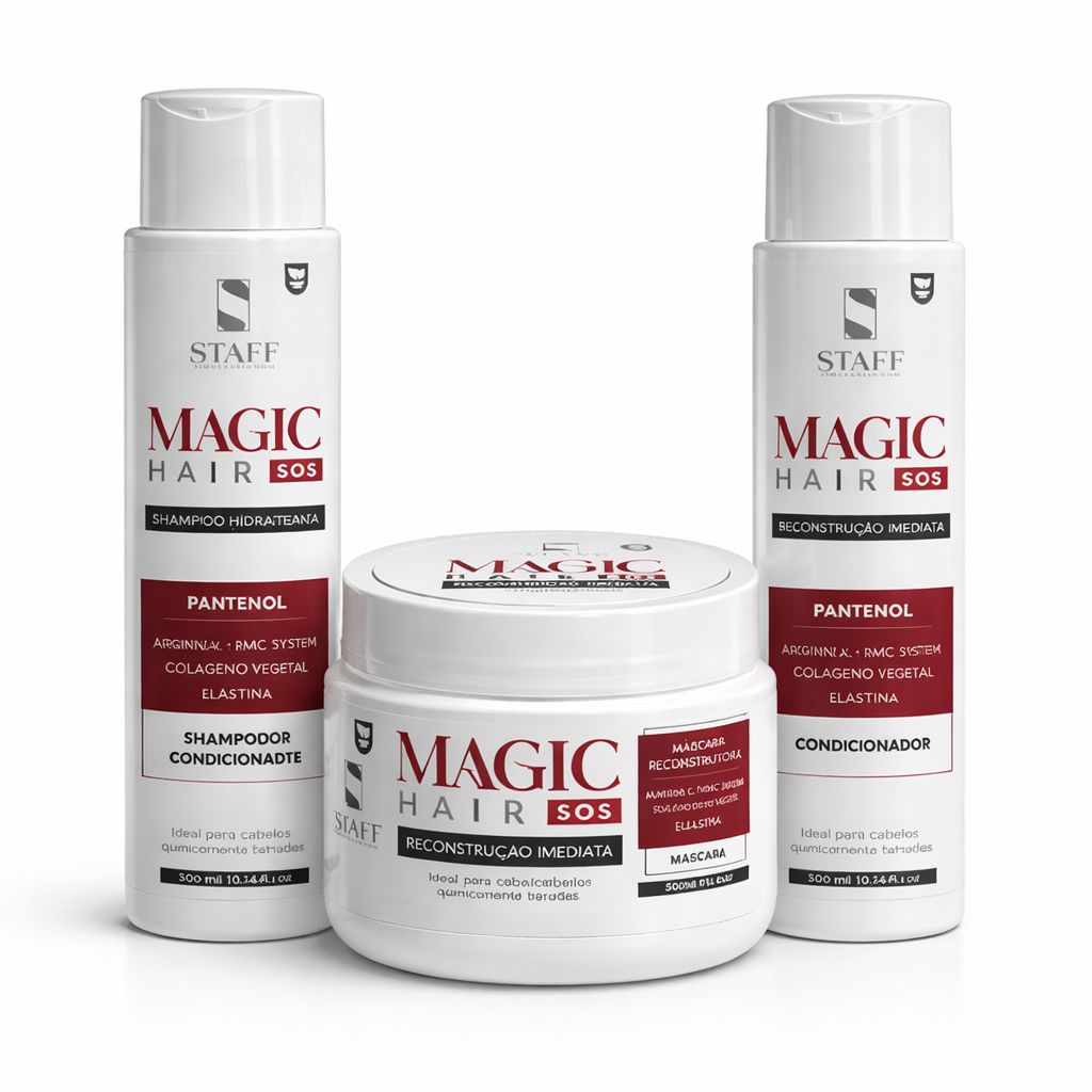 A Linha Magic Hair SOS foi desenvolvida para promover reconstrução imediata, reposição de massa e nutrição intensiva desde a primeira aplicação.