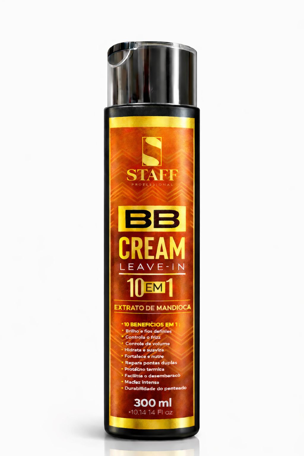 O BB Cream Leave-in 10 em 1 Staff Professional é um tratamento multifuncional desenvolvido para hidratar, proteger e transformar os fios em um único passo. Com extrato de mandioca, fortalece a fibra capilar, proporciona brilho intenso, maciez e ação antifrizz, deixando o cabelo mais saudável e disciplinado.